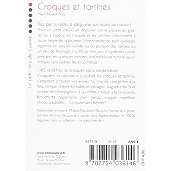 Des petits plats à déguster en toute occasion... Pour un petit creux, un déjeuner sur le pouce, au goûter ou à l'apéro, les croques et les tartines conviennent à toute heure de la journée ! Une tranche de pain, quelques légumes, un peu de viande ou de poisson, quelques herbes, ou du fromage : il suffit de très peu d'ingrédients, et toujours très simples à trouver, pour préparer en quelques minutes une délicieuse tartine ou un croque, sans oublier les bruschettas ! Rapides, originales et faciles à préparer, les tartines n'en finiront pas de vous étonner ! 140 recettes vite faites, bien faites ! Croquants et savoureux à souhait, les croques et tartines s'adaptent à toutes vos envies : tartine de courgettes à la feta, croque de magret de canard à l'abricot, baguette du Sud, tartine de poêlée de champignons à la crème, bruschetta napolitaine, foccacia aux olives, pain perdu, croque moelleux choco-amandes... Craquez sans hésiter !